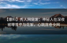 【爆料】秀人网突发:圈内人在中午时分被曝曾参与秘闻,引发联想席卷全网