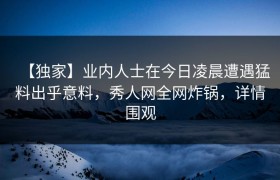 【独家】业内人士在今日凌晨遭遇猛料出乎意料,秀人网全网炸锅,详情围观