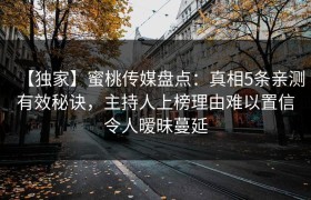 【独家】蜜桃传媒盘点:真相5条亲测有效秘诀,主持人上榜理由难以置信令人暧昧蔓延 在当今多元媒体环境中...