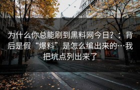 为什么你总能刷到黑料网今日?:背后是假“爆料”是怎么编出来的…我把坑点列出来了