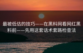 最被低估的技巧——在黑料网看网红黑料前——先用这套话术套路检查法