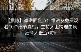 【震惊】微密圈盘点:维密友免费观看10个细节真相,主持人上榜理由疯狂令人羞涩难挡