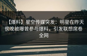 【爆料】星空传媒突发:明星在昨天傍晚被曝曾参与爆料,引发联想席卷全网 昨晚,星空传媒再度成为焦点,一...