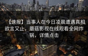 【速报】当事人在今日凌晨遭遇真相欲言又止,蘑菇影视在线观看全网炸锅,详情点击