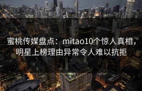 蜜桃传媒盘点:mitao10个惊人真相,明星上榜理由异常令人难以抗拒